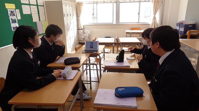 最後に、感謝のことばを歌詞にして「正解」という曲にのせて歌います。iPadで曲を聴きながら、みんなで歌詞を考えています。