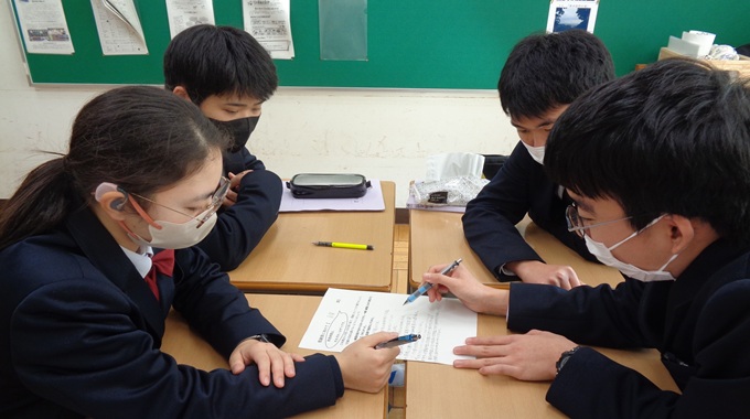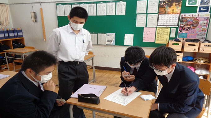 文字数が合わなくて難しいけれど、がんばって考えています(1年女子生徒の感想)