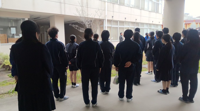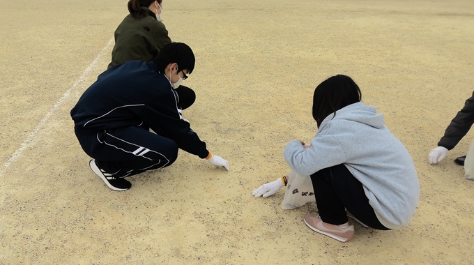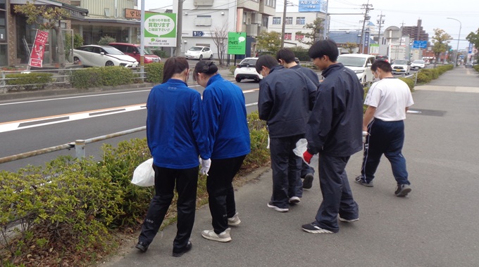 3月13日(金)、本校生徒と併設している桃陵高校の生徒が協力し、ボランティア清掃活動を行いました。当日は天候にも恵まれ、学校周辺の清掃、校内の窓清掃、グラウンドの石拾いなどを分担して取り組みました。