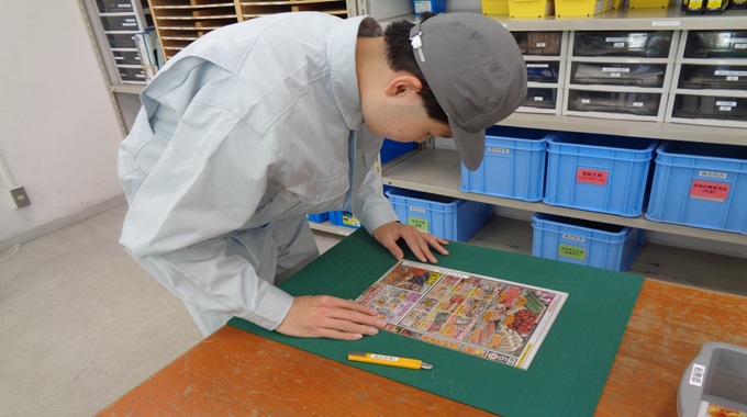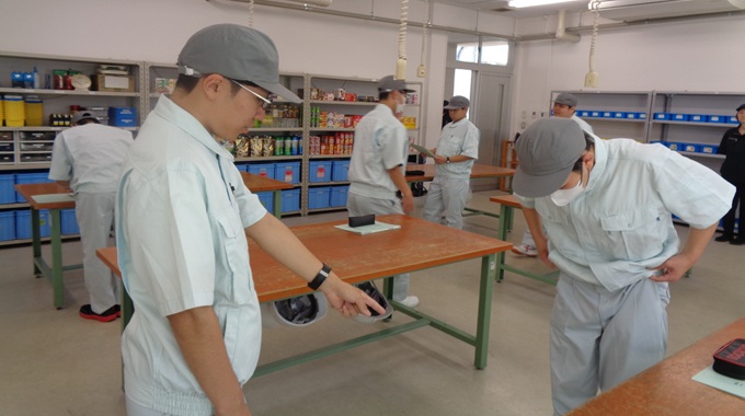 商品管理ではさまざまな作業がありますが、1年生では、「カード仕分け・包装・裁断」の3種目に約1か月半づつ取り組んでいます。授業は、身だしなみチェックからスタートします。
