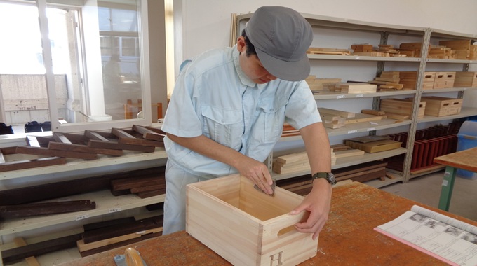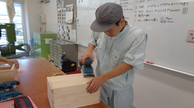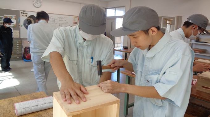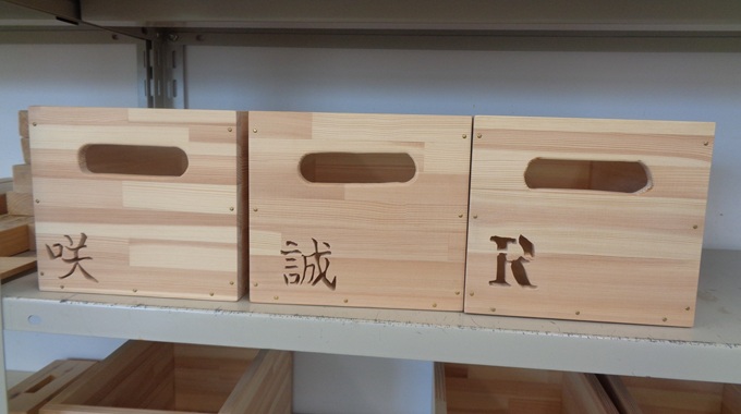木工では、一人1つ「整理箱」を製作しています。製作した整理箱は、教室で体育館シューズなどを入れて使用します。