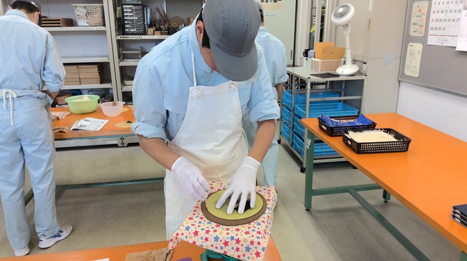 窯業は難しいですがやりがいを感じながら作業しています。最初から最後まで一人で製作し、1回の授業で製品が完成するので達成感を感じることができます。工程の中では「なめし」が一番難しいです。(1年生 生徒の感想)